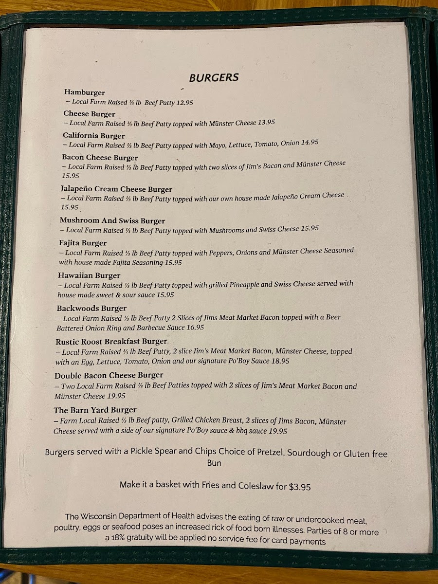 Rustic Roost in Iron River, WI proudly serves up a delicious sausage patty sourced from Jim's Meat Market as a flavorful side option. Enjoy the mouthwatering taste and quality of locally-sourced meat during your dining experience. Savor the essence of Iron River's culinary delights with us!